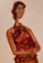 Her Signatures Collection displays expressive features, elongation, angular marks, a symbolic swirl on the cheekbones and a particular positioning of the face. Each face has a different personality. Her signatures can be found in two forms: in focus (emphasis on the face) or in perspective (figures are more posed, in context or referencing a story or feeling). Shape, line and geometric marks are another key element of her paintings.