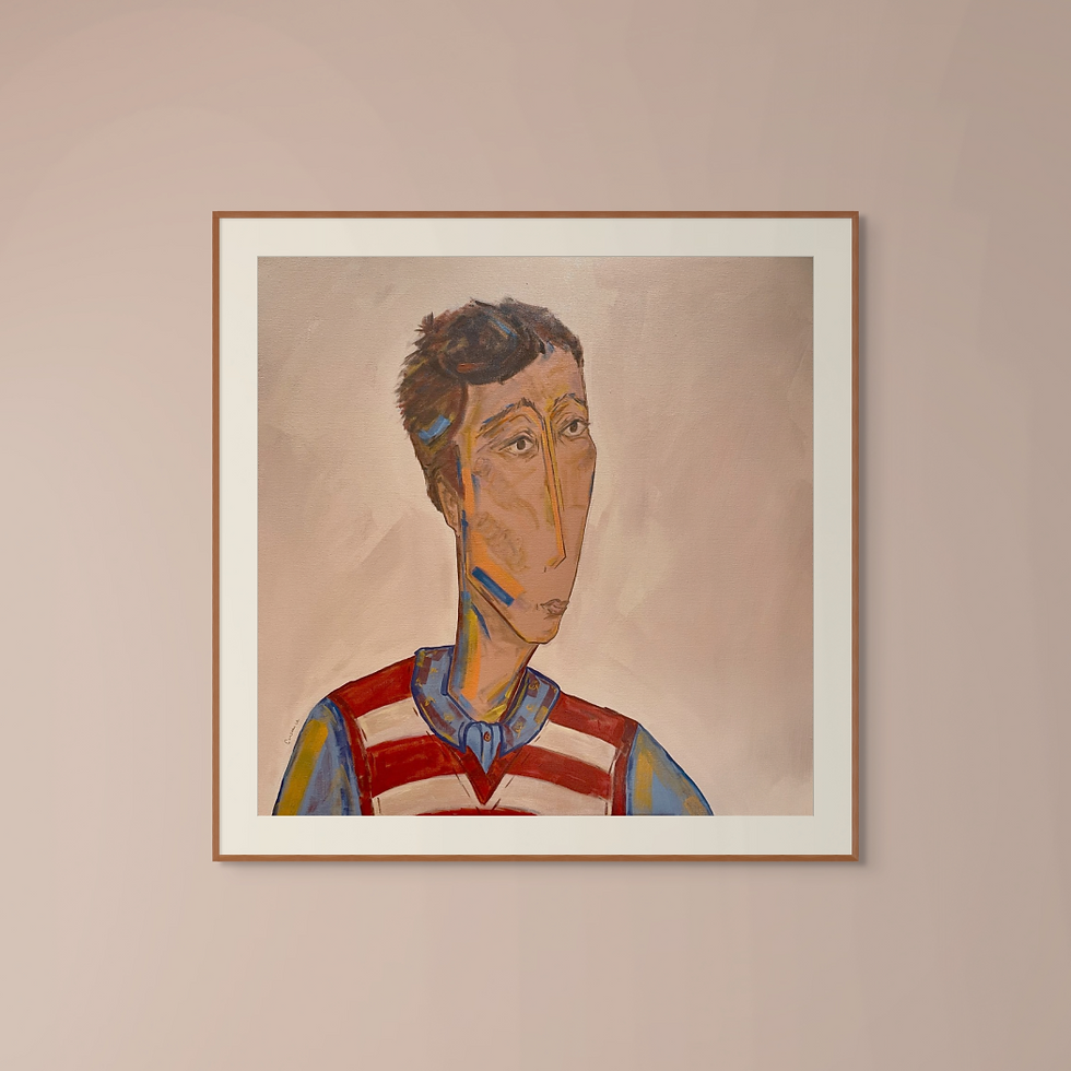 Expressed through structure and expressive marks, elongated form and distinctive features such as the symbolic swirls that accentuate the cheekbones.